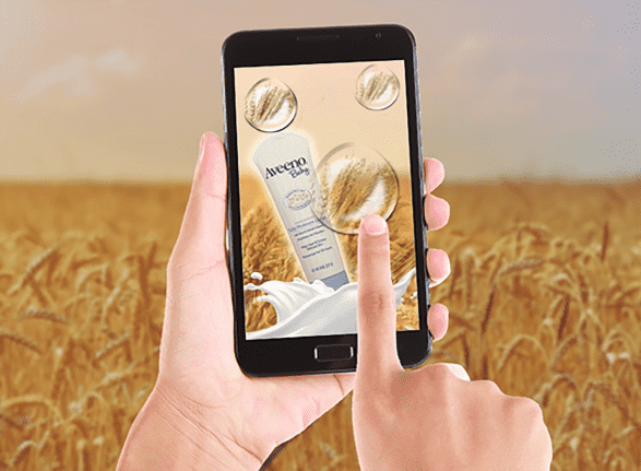 視+AR為艾維諾Aveeno策劃制作了支付寶AR播種燕麥體驗,感受北緯45度的金色麥田,消費者點擊屏幕進入互動游戲,通過AR直觀了解艾維諾富含天然燕麥精粹成分和產(chǎn)品功能,最終引導用戶購買。