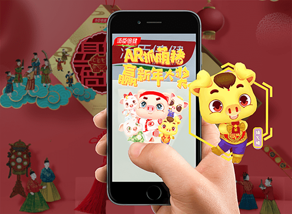 通過支付寶AR掃一掃任意湯臣倍健logo,把寄托著2019年全年好運的健康豬、發(fā)財豬、福氣豬、如意豬、美麗豬統(tǒng)統(tǒng)抓住即可抽取“好運紅包”。視+AR為湯臣倍健打造的支付寶AR新春營銷活動引起消費者巨大反響,極大地提升湯臣倍健品牌曝光率,為品牌新春營銷帶來了新氣象。