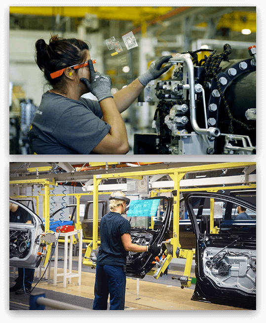 將汽車生產(chǎn)信息通過AR平臺,融合到生產(chǎn)線,輔助員工裝配和檢查產(chǎn)線狀態(tài)